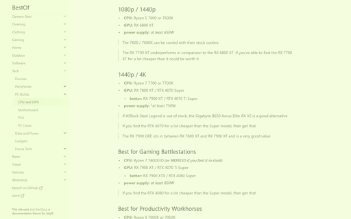 I would just like your feedback and opinion, good or bad, on the PC components I have on a project I’ve made called “bestof”. I’ve worked on it for quite some time, and after some recent changes to improve the PC builds section I think it is ready to be shown off.