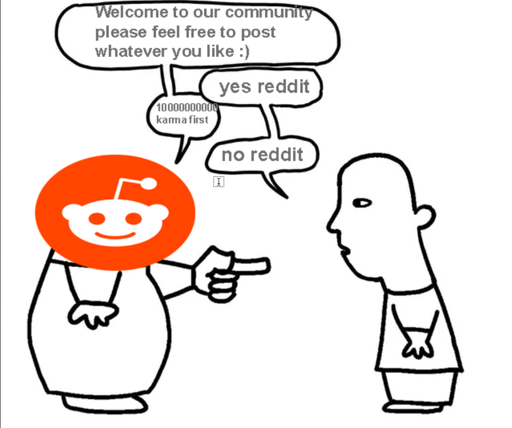It’s more like: “You can post anything you like” “Yes, Reddit” “Post removed because it violates rule 593”
