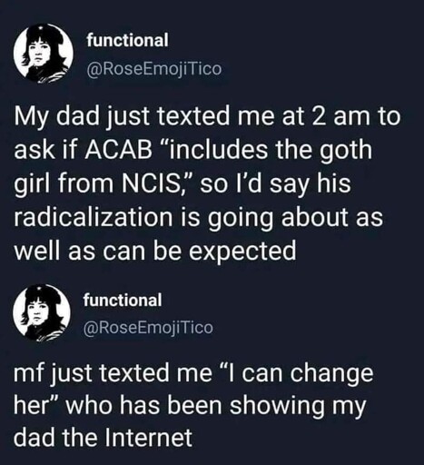 compostgoblin@piefed.blahaj.zone to 196@lemmy.blahaj.zoneEnglish · 23 hours agoWho do the ACAB rules apply to?piefed.cdn.blahaj.zoneimagemessage-square99linkfedilinkarrow-up1843arrow-down112 cross-posted to: 196@lemmy.world