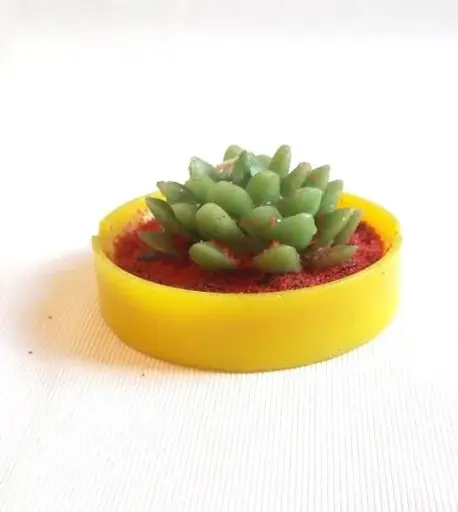 Vasetto e pianta grassa realizzati interamente in cera colorata e profumata . Candele artistiche