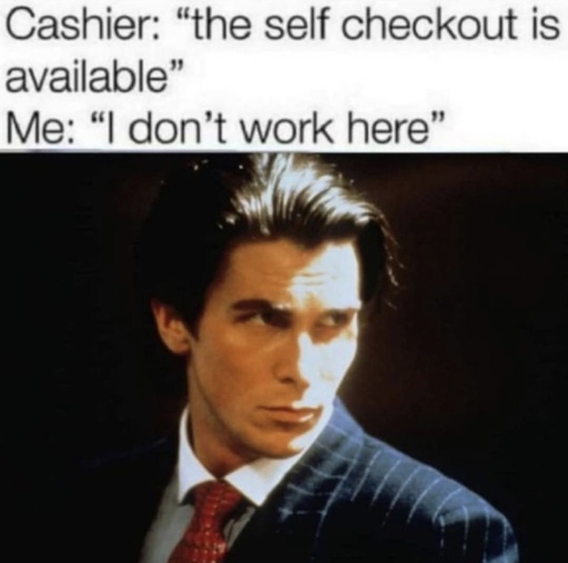 My grocery store recently got rid of their self checkout machines, and I’m actually upset by it. It went from having 6 self checkout lines plus the cashiers to only the cashiers, and now it takes like three times longer to buy my shit.