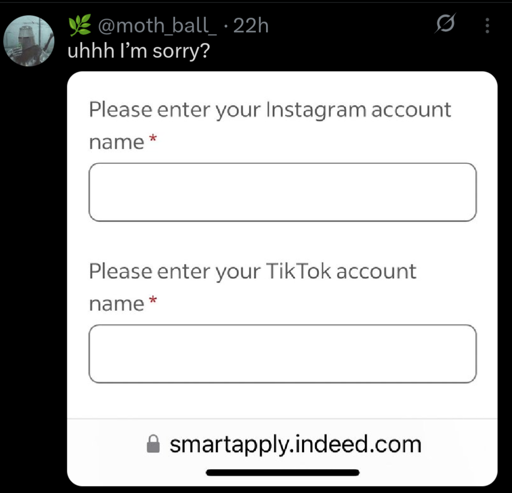 arrow-up1800arrow-down1imageJob applications want your whole life media.piefed.worldThe Picard Maneuver@piefed.world to Microblog Memes@lemmy.worldEnglish · edit-27 days agomessage-square178linkfedilink