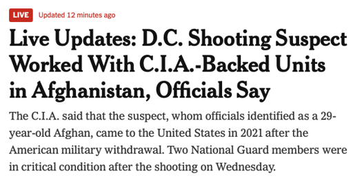 “In the wake of the disastrous Biden withdrawal from Afghanistan, the Biden administration justified bringing the alleged shooter to the United States in September 2021 due to his prior work with the U.S. government, including C.I.A., as a member of a partner force in Kandahar, which ended shortly following the chaotic evacuation,” Mr. Ratcliffe said in a statement.
